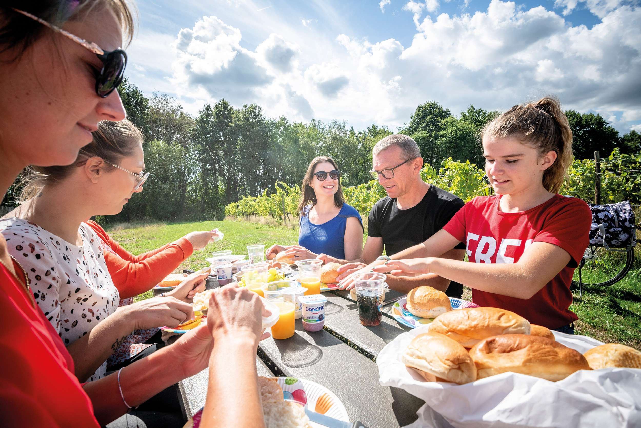 Een picknick op het strand is altijd een goed idee. Heb je liever geen zandkorrels tussen je boterhammen? Langs de kust zijn er heel wat picknickbanken te vinden, zoals die aan het Hannecartbos in Koksijde, een natuurgebied dat deel uitmaakt van Ter Yde, een uitgestrekt duinencomplex van 260 ha dat uitstekend al wandelend te verkennen valt. Ooit al eens tussen de wijnranken je lunch opgegeten? Bij het wijndomein Altinus kan je tussen de rijpende druiven even uitrusten van je wandeling in de groene omgeving van Zonnebeke en op het wandelnetwerk van Ieperboog Oost. Ook bij wijndomein Ravenstein in Wervik geniet je van een idyllische picknick aan de vijver. Liever verpozen in het bos? Ga dan eens op zoek naar de rustgevende picknickbank in het Sint-Arnolduspark van Tiegem terwijl je wandelt in het land van Stijn Streuvels, wiens levensverhaal je kan beluisteren in één van de podwalks.
